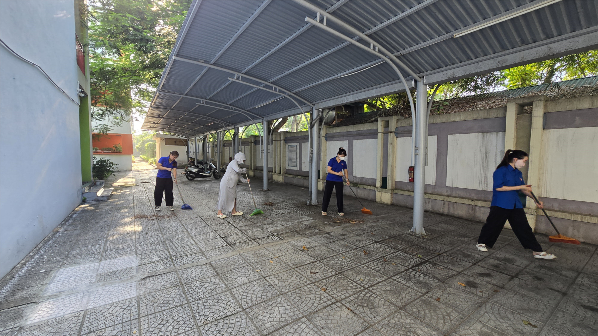 Toàn thể cán bộ, giáo viên đã cùng nhau cắt tỉa cây hoa, nhổ cỏ ở vườn trường, dọn dẹp, lau chùi vệ sinh bàn ghế, lớp học đảm bảo môi trường xanh, sạch, đẹp và an toàn. Trên tinh thần tất cả vì học sinh thân yêu, các cán bộ, giáo viên và nhân viên nhà trường đều phấn khởi, tích cực tham gia lao động. Các bác bảo vệ đã sửa chữa, bảo dưỡng, vệ sinh tất cả các đồ dùng, trang thiết bị như quạt, điều hoà, bình nóng lạnh, thay bóng đèn, bảng biểu. Bên cạnh đó, các cô giáo đã giặt toàn bộ chăn, gối, màn, đồ chơi của trẻ, phơi khô sạch sẽ thơm tho…việc làm này có ý nghĩa hết sức thiết thực giúp cho nhà trường có một khuôn viên sạch sẽ, đảm bảo an toàn, giúp các bậc phụ huynh cũng như các bé có một tâm thế yên tâm đến trường, sẵn sàng chào đón năm học mới một cách tích cực, phấn khởi.