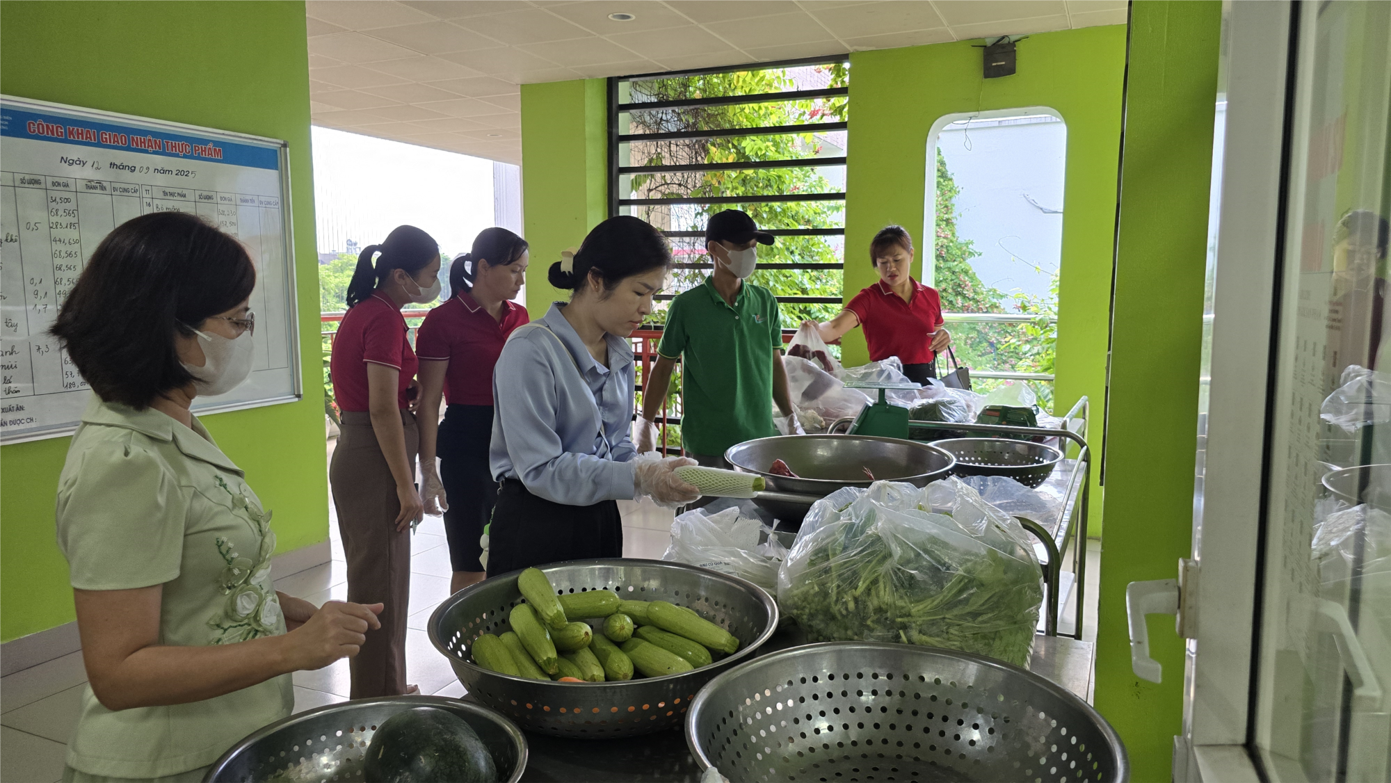 - Quy trình giao nhận thực phẩm: Trực tiếp giám sát việc tiếp nhận các loại thực phẩm từ nhà cung cấp. Tất cả các mặt hàng như thịt, cá, rau củ... đều được kiểm tra kỹ lưỡng về chất lượng, nguồn gốc và giấy tờ chứng minh. Phụ huynh đánh giá cao sự minh bạch và nghiêm túc của nhà trường trong khâu nhập hàng, đảm bảo thực phẩm luôn tươi ngon và an toàn.