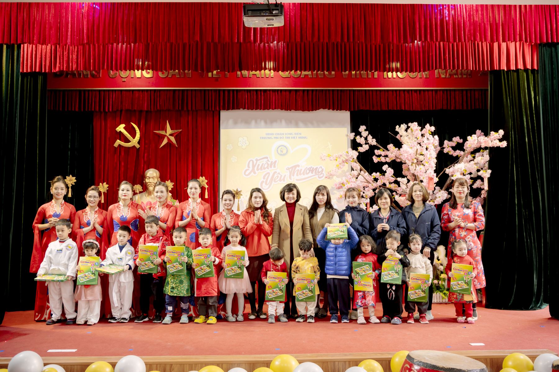 Mỗi khi tết đến xuâ !important;n về đâu đó lại vang lên giai điệu thân thương của mùa xuân và trong mỗi chúng ta đều trào dâng những cung bậc cảm xúc khác nhau! Mùa xuân đem đến cho cuộc sống một sức sống mới, một sự đoàn tụ, khởi đầu những khao khát, hy vọng một năm mới tràn đầy niềm vui và hạnh phúc. Hoà chung trong không khí tưng bừng phấn khởi với những giây phút hân hoan chờ đón mùa xuân mới, được sự đồng ý của Ban giám hiệu trường mầm non Đô thị Việt Hưng, Công ty TNHH đào tạo tư vấn và phát triển giáo dục Việt Nam được đồng hành cùng với nhà trường tổ chức Chương trình “Xuân yêu thương 2023”. Đây là một hoạt động ý nghĩa mà nhà trường dành tặng cho các bé dịp cuối năm, để các bé được vui đùa, trải nghiệm, được hòa vào không khí đón Tết tại chính ngôi nhà thứ hai của mình.