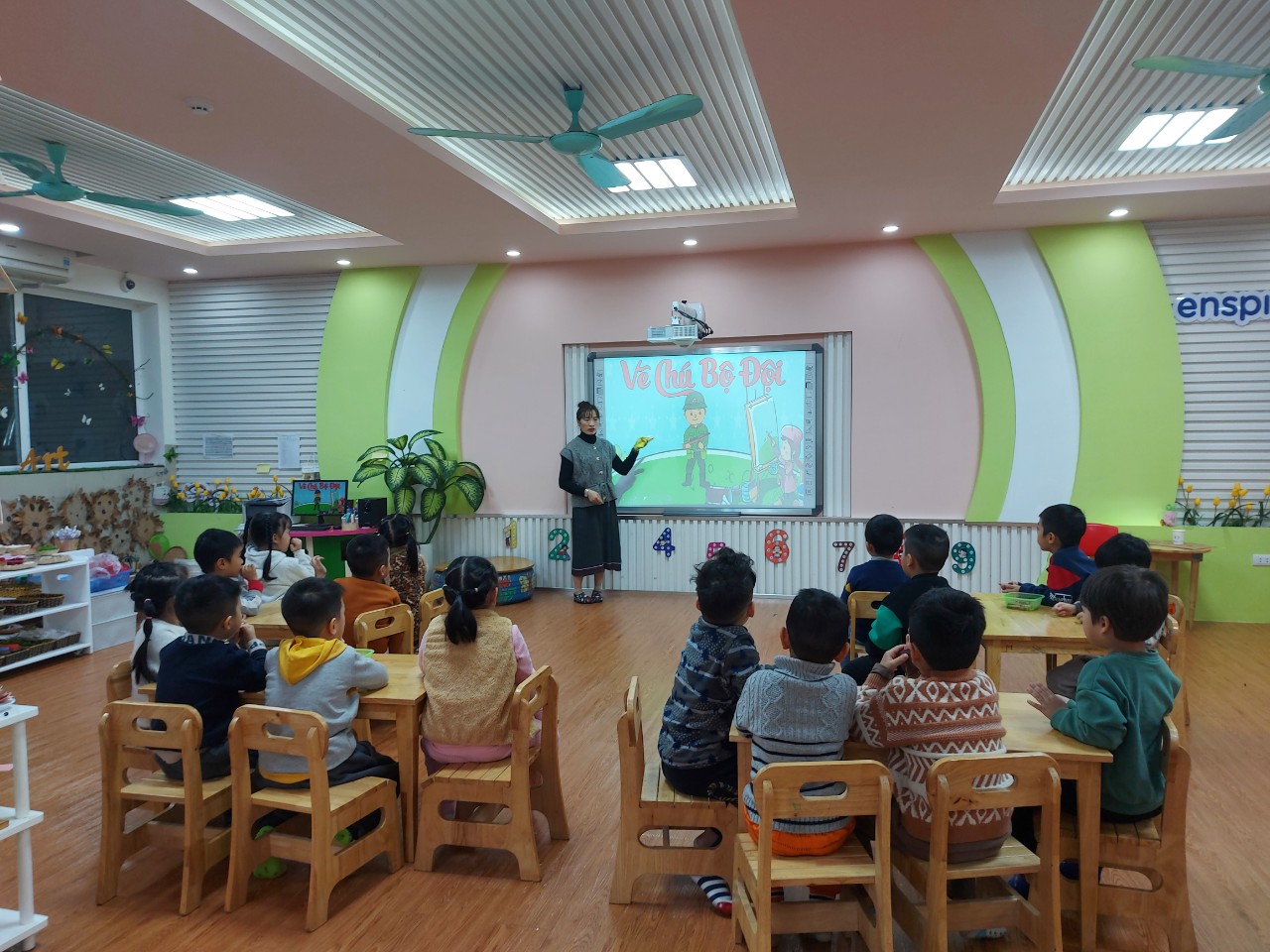 Chủ đề &ldquo !important; Cháu yêu chú bộ đội” được diễn ra trong tuần lễ kỷ niệm ngày Thành lập Quân đội nhân dân Việt Nam 22/12, các giáo viên nhiệt liệt hưởng ứng qua việc tìm tòi, sáng tạo thiết kế, những bài dạy tốt. Các cô giáo đã trang trí lớp theo chủ đề, hướng trẻ vào bài dạy bằng việc sưu tầm nhiều tài liệu, hình ảnh sinh động về công việc của anh Bộ đội Cụ Hồ qua các thời kỳ lịch sử. Từ đó giúp các bé hiểu rõ công việc gian lao, vất vả và có ấn tượng đẹp đẽ về những người chiến sỹ Quân đội nhân dân Việt Nam. Các bé được cùng nhau ôn lại truyền thống vẻ vang của quân đội Nhân dân Việt Nam