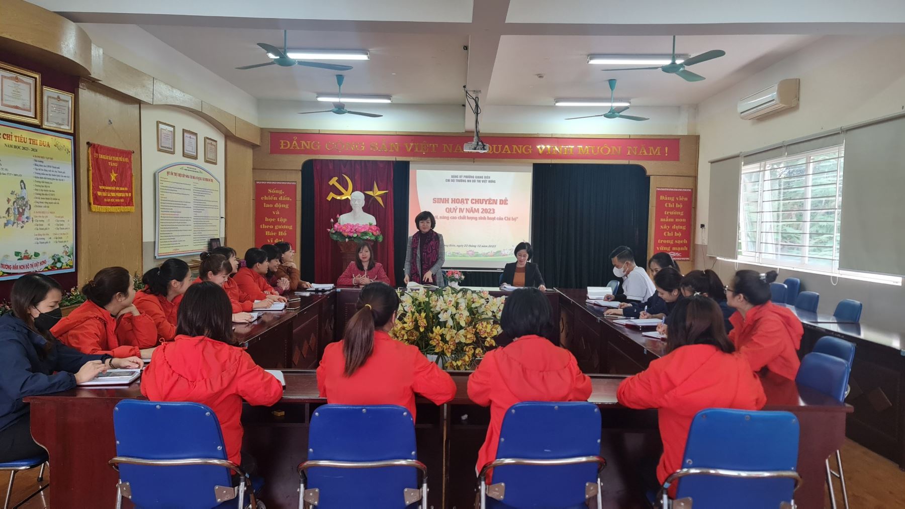 Thực hiện kế hoạch sinh hoạt chuyê !important;n đề năm 2023, ngày 22 tháng 12 năm 2023, Chi bộ Trường mầm non Đô thị Việt Hưng đã tổ chức buổi sinh hoạt chuyên đề Quý IV với nội dung "Đổi mới, nâng cao chất lượng sinh hoạt của Chi bộ"