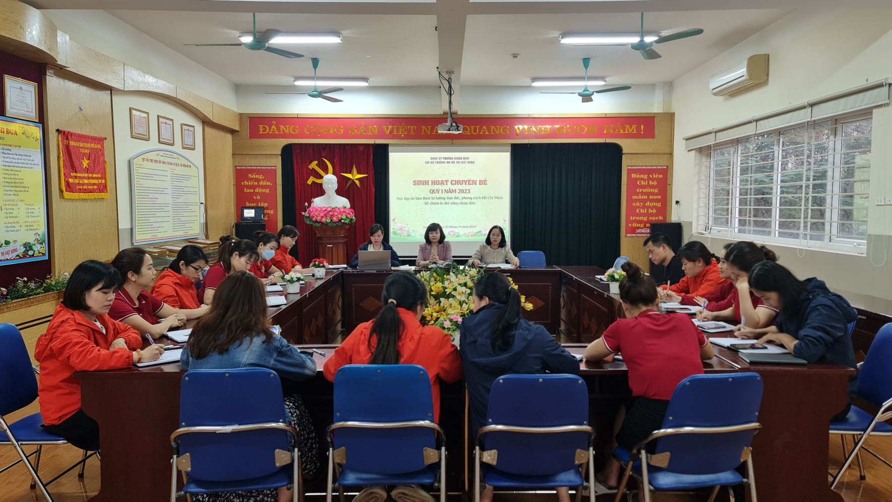 Tham dự và !important; chỉ đạo buổi sinh hoạt chuyên đề có đồng chí Trần Thị Hoàng Lâm - Bí thư Chi bộ, Hiệu trưởng nhà trường và các đồng chí trong chi ủy cùng toàn thể đảng viên thuộc chi bộ.