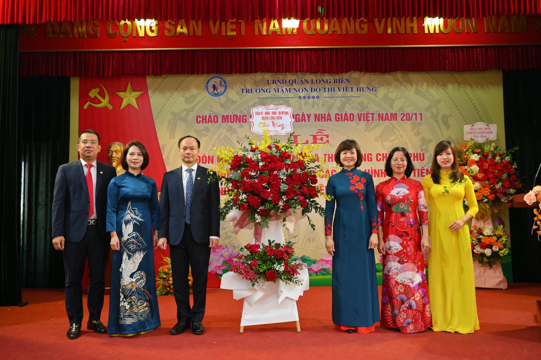 Lã !important;nh đạo Quận ủy, HĐND, UBND, UBMTTQ, phòng GDĐT quận Long Biên tặng hoa chúc mừng các thầy cổ giáo nhà trường nhân Kỷ niệm 41 năm ngày nhà giáo Việt Nam
