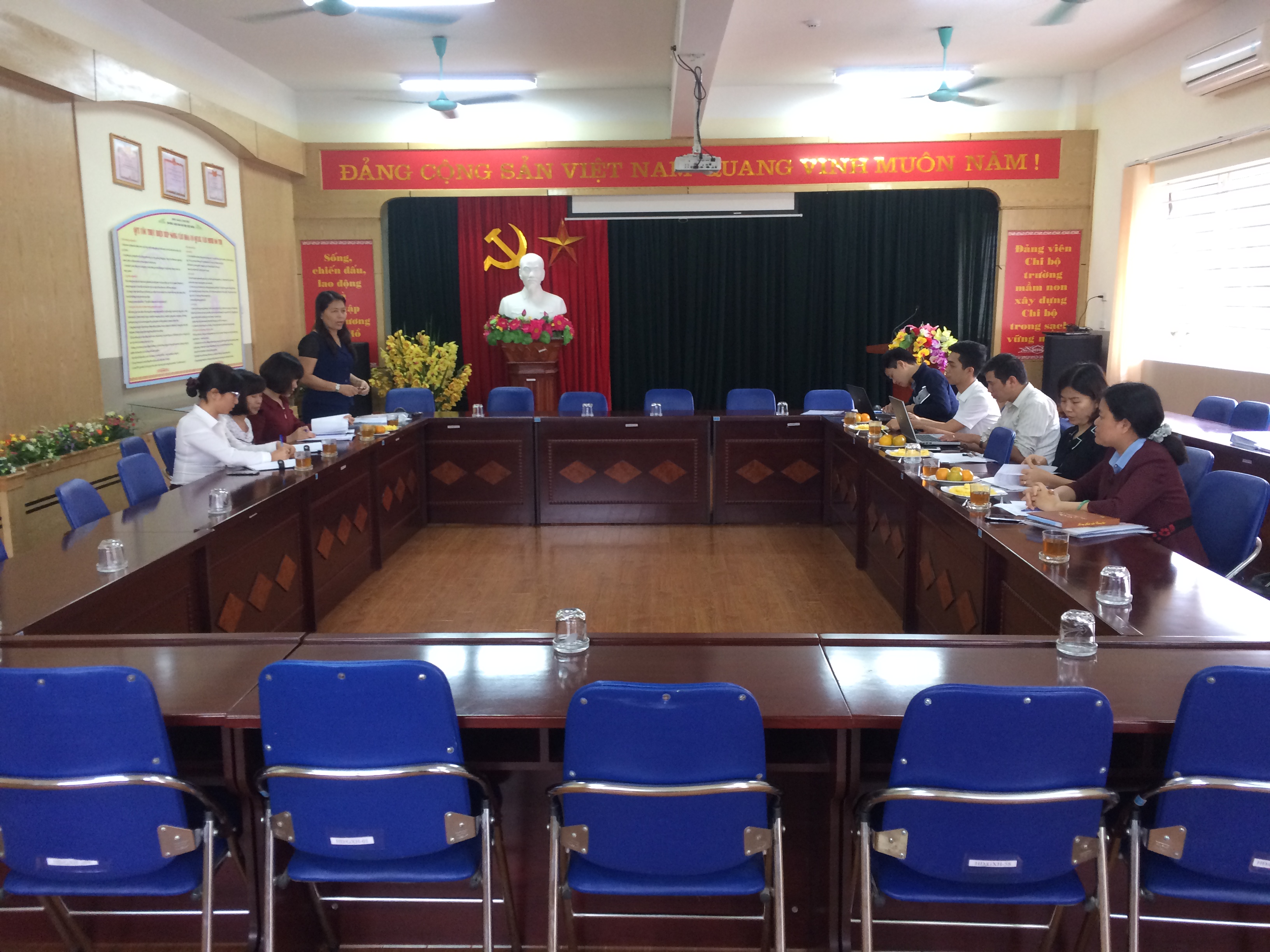 với Đoàn kiểm tra có bà Trần Thị hoàng Lâm – Bí thư chi bộ, Hiệu trưởng nhà