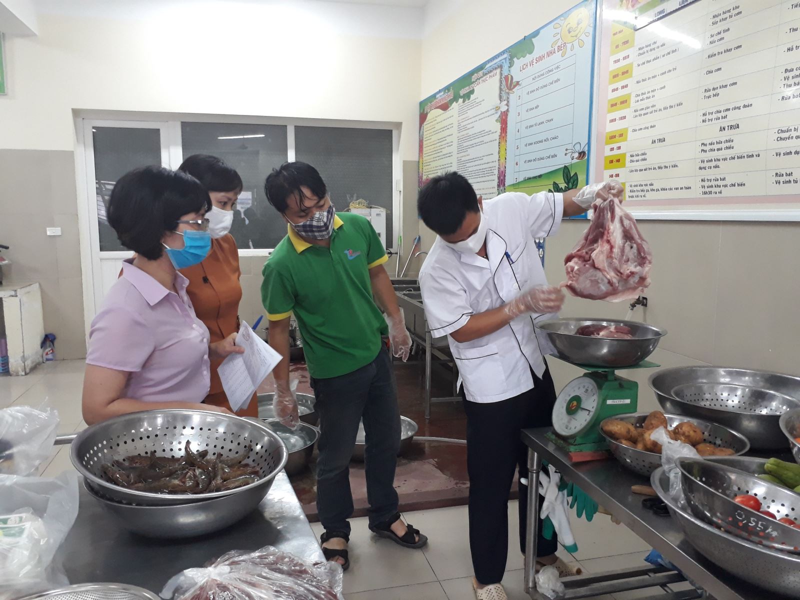 Để làm tốt công tác xã hội hóa giáo dục, công khai dân chủ, hàng tháng nhà trường đều xây dựng kế hoạch phối hợp Ban đại diện phụ huynh các khối lớp tổ chức kiểm tra giám sát việc giao nhận, chế biến thực phẩm cho học sinh trong trường học.