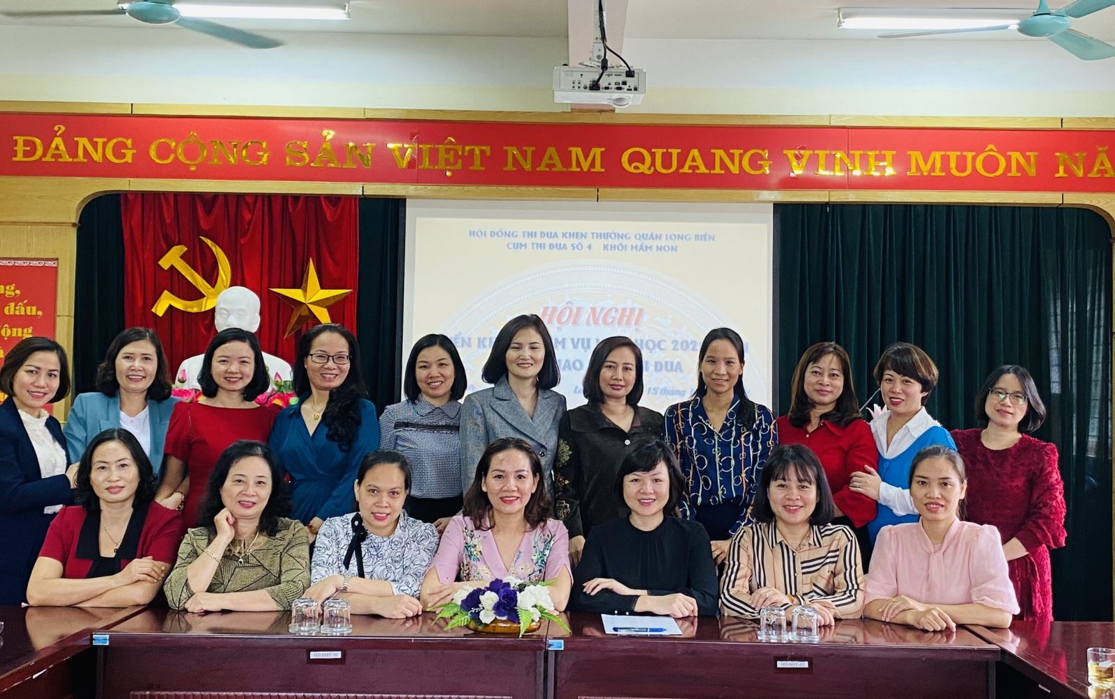 Hò !important;a chung không khí thi đua sôi nổi của các cấp các ngành hướng tới Đại hội đảng bộ Thành phố Hà Nội lần thứ 17 nói riêng và Đại hội đảng toàn quốc lần thứ 13 nói chung. Sáng ngày 15/10/2020, Cụm thi đua số 4 cấp học Mầm non đã long trọng tổ chức Hội nghị ký giao ước thi đua đầu năm học tại phòng Hội đồng giáo dục trường mầm non Đô thị Việt Hưng.