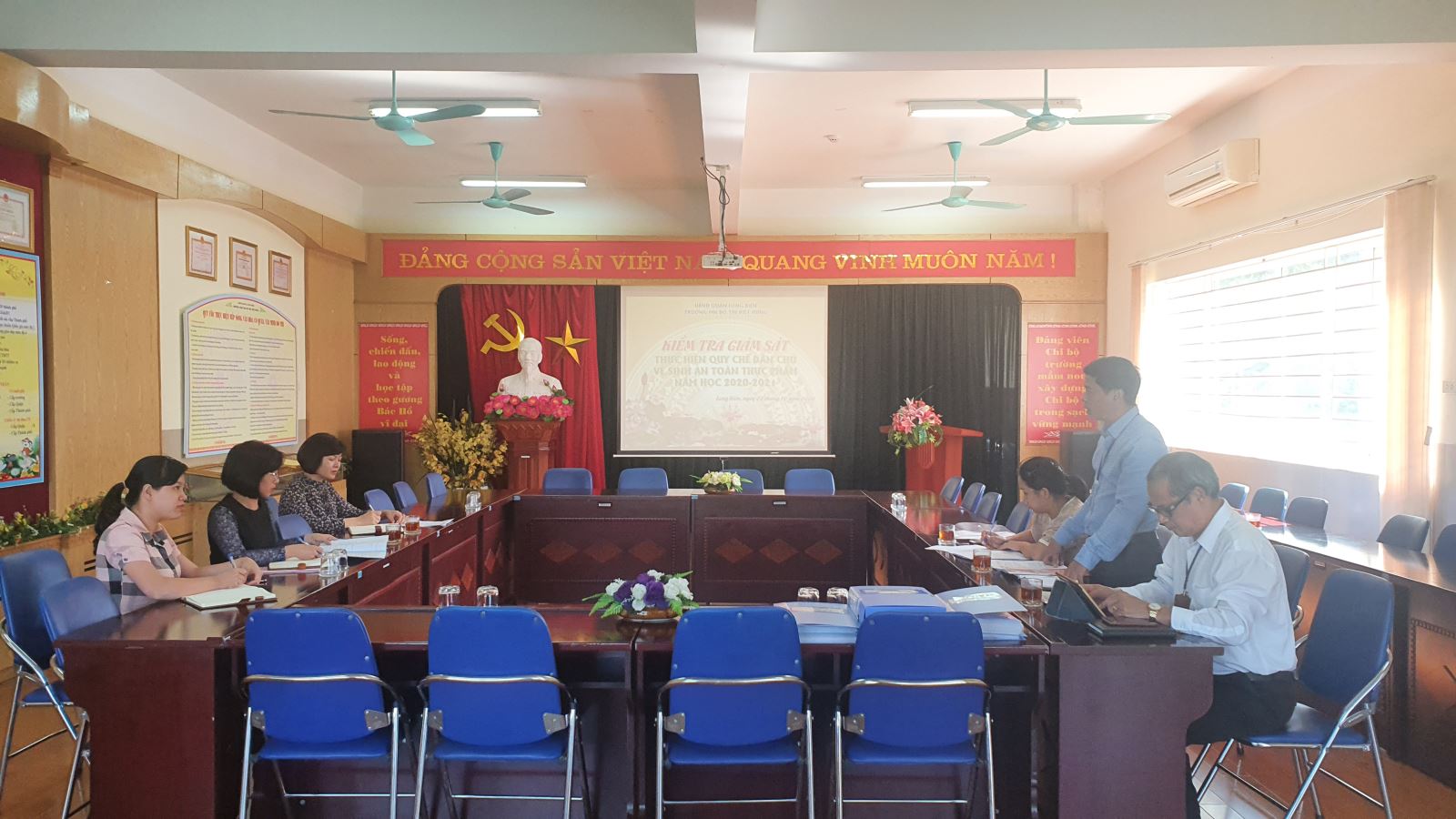 Đoà !important;n giám sát do đồng chí Nguyễn Mạnh Cường – Ủy viên ban thường vụ, Phó chủ tịch HĐND, Chủ tịch UB MTTQ phường Giang Biên dẫn đầu cùng với các đồng chí trong hội đồng đã tiến hành kiểm tra các nội dung về quy chế dân chủ và thực hiện vệ sinh an toàn thực phẩm của nhà trường