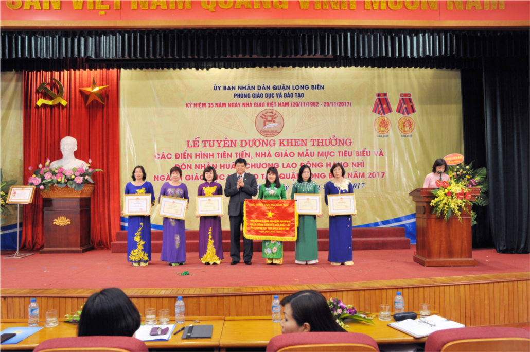 Thật vinh dự cho tập thể Nhà trường, ngày 16/11/2017 tại buổi lễ tuyên dương khen thưởng các tập thể, cá nhân điển hình tiên tiến năm 2017 quận Long Biên, Trường mầm non Đô thị Việt Hưng đã được đón nhận Bằng khen của Bộ Giáo dục và Đào tạo và giấy chứng nhận trường học điện tử của UBND quận Long Biên. Đây là nguồn động viên to lớn đối với tập thể cán bộ giáo viên nhân viên nhà trường và là động lực để nhà trường tiếp tục đẩy mạnh và phát huy những truyền thống đã đạt được nhằm giúp học sinh phát huy tốt nhất về chân thể mỹ một cách toàn diện.
