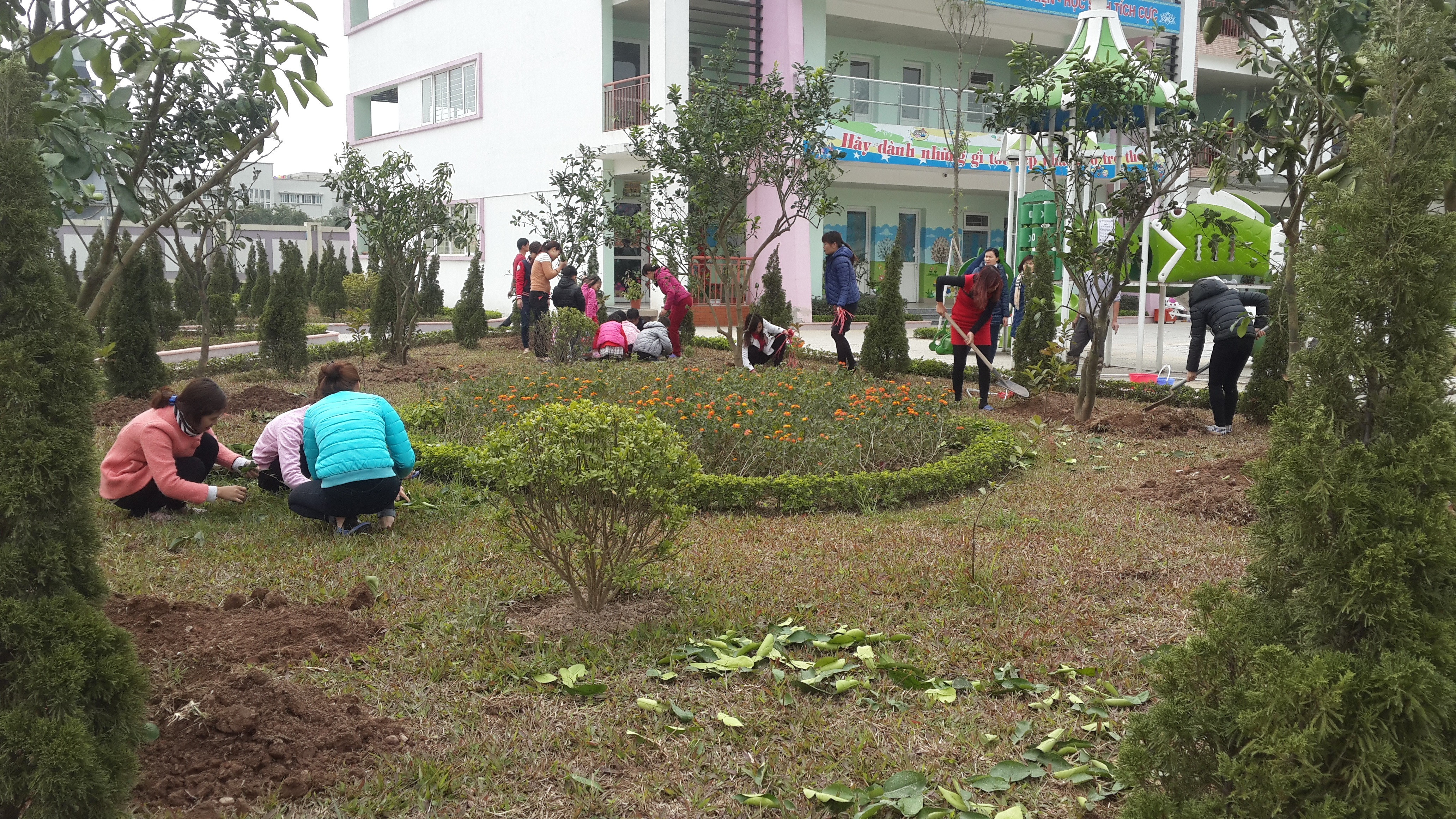 Phát huy tinh thần ấy, sáng ngày 16/02/2016 (tức ngày 09/01 Âm lịch), trong không khí náo nức của mùa xuân mới, trong tiết trời ấm áp khi xuân về tập thể CB, GV, NV trường Mầm non Đô thị Việt Hưng đã tổ chức phát động Tết trồng cây với chủ đề “Mùa xuân là Tết trồng cây”. Đây là dịp để tuyên truyền, nâng cao nhận thức của cán bộ, giáo viên, nhân viên và học sinh về tầm quan trọng, ý nghĩa của việc trồng cây trong và ngoài nhà trường.