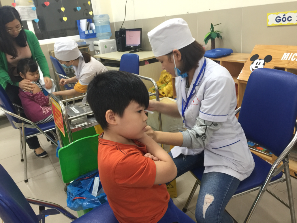 Đúng 07 giờ 30 phút, hầu hết các bậc phụ huynh, giáo viên phụ trách, nhân viên y tế của trường và các cán bộ Y tế phường Giang Biên đã có mặt đông đủ. Chiến dịch tiêm phòng diễn ra 03 giai đoạn theo đúng qui định của ngành Y tế, gồm: Khám sang lọc, tổ chức tiêm và theo dõi sau tiêm.