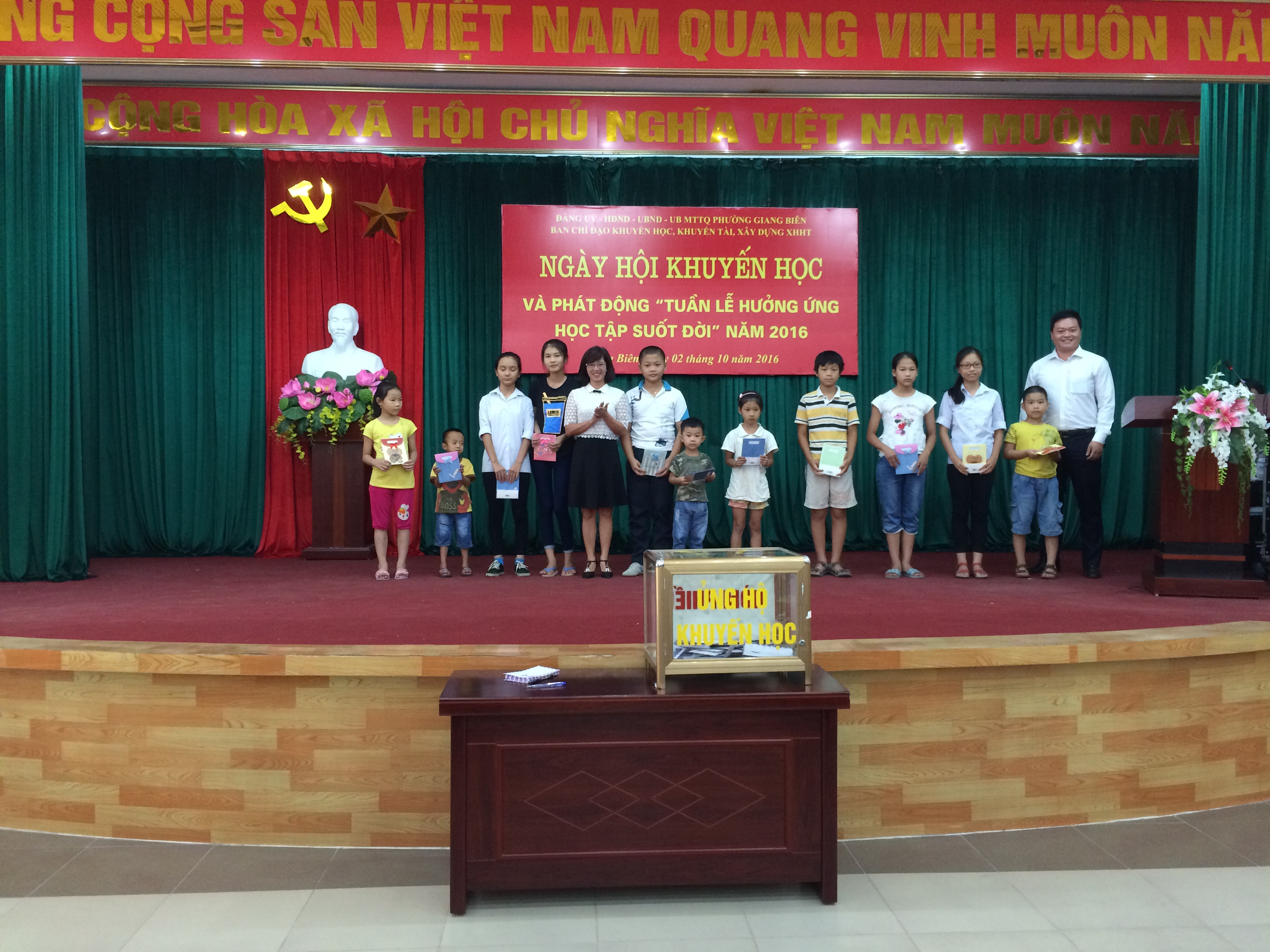 trao quà cho các em nhỏ có hoàn cảnh khó khăn đang sinh sống trên địa bàn phường Giang Biên