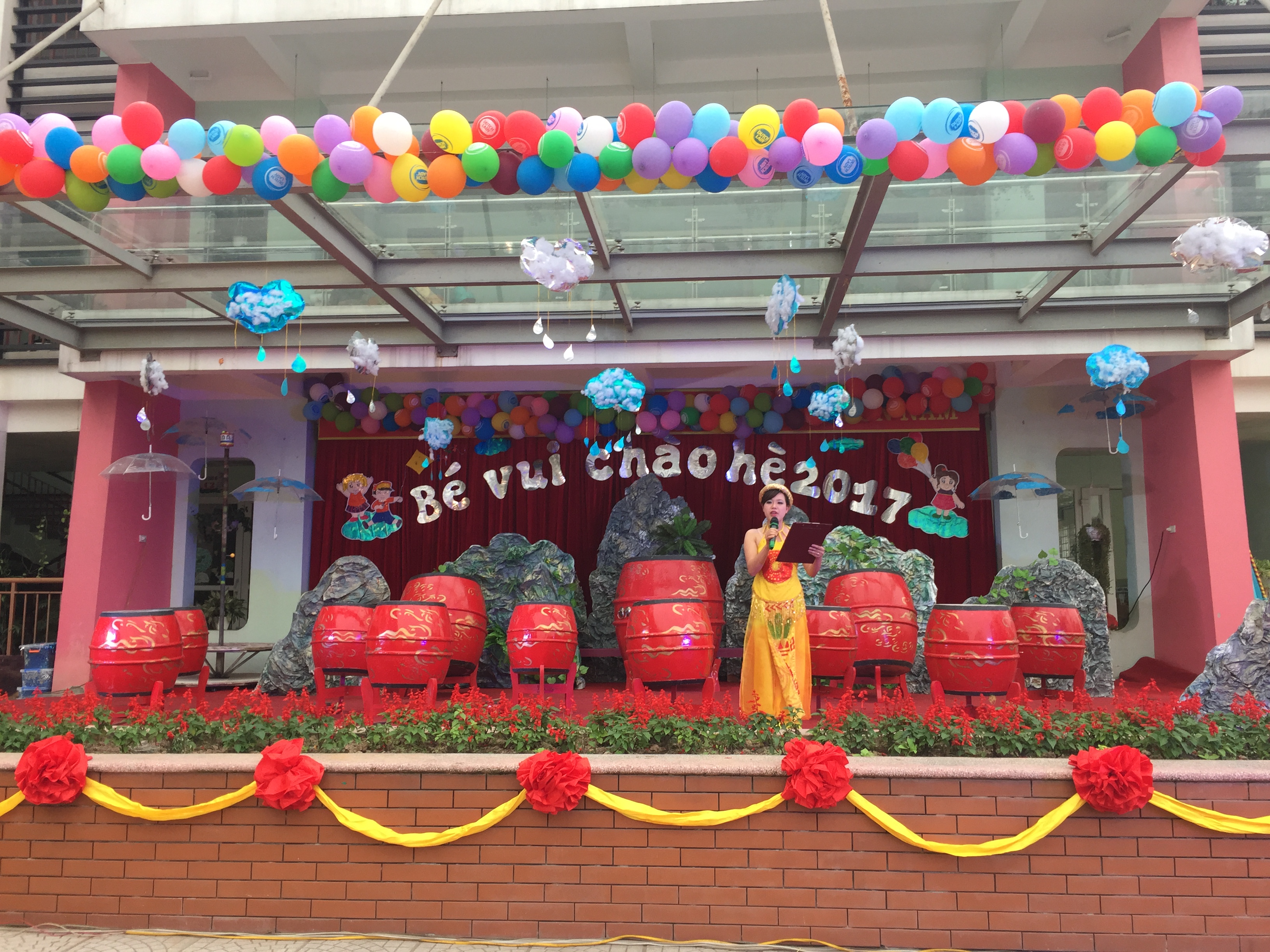 Biểu diễn văn nghệ: với màn “Trống hội chào hè” và các tiết mục đặc sắc đã đạt giải Xuất sắc trong Hội thi “Giai điệu tuổi hồng” cấp Quận năm học 2016-2017 giáo viên và học sinh trường MN Đô Thị Viêt Hưng biểu diễn.