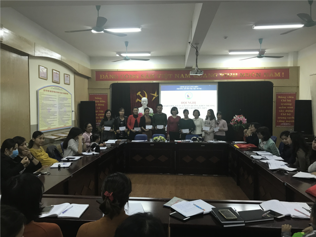 Căn cứ công văn số 89/ PGD&ĐT ngày 31/12/2017 về việc hướng dẫn thực hiện nhiệm vụ năm học 2017 - 2018 của PGD&ĐT quận Long Biên; căn cứ vào kết quả thực hiện nhiệm vụ năm học, trường mầm non Đô Thị Việt Hưng đã tổ chức Hội nghị Sơ kết học kỳ I năm học 2017-2018.