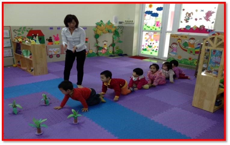 Cô và trẻ cùng chơi trò chơi