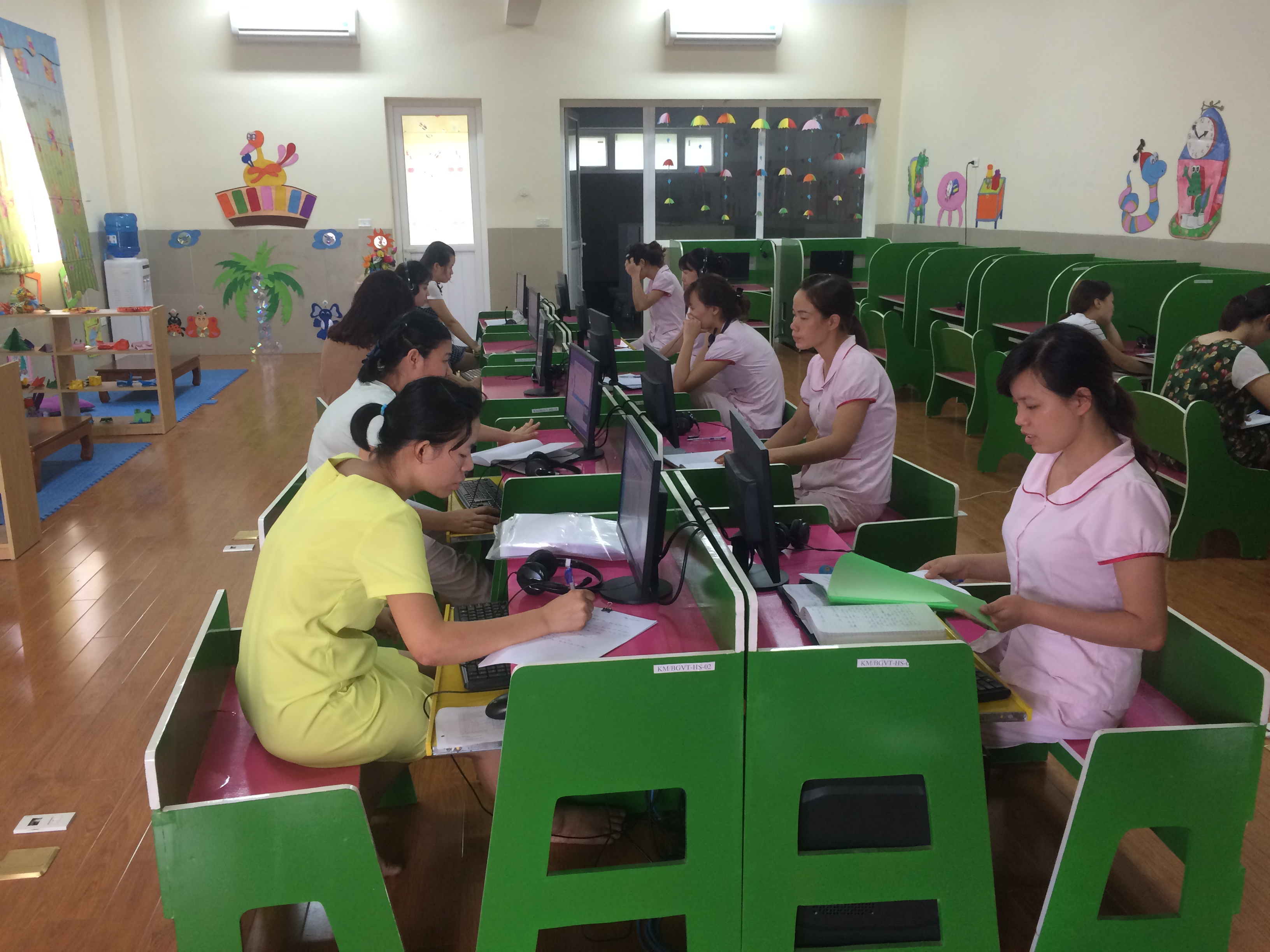 Để chuẩn bị cho công tác chăm sóc nuôi dưỡng giáo dục trẻ trong năm học 2017- 2018 đạt hiệu quả và chất lượng tốt nhất, Trường mầm non đô thị Việt Hưng tổ chức các lớp bồi dưỡng chuyên môn và kỹ năng sư phạm cho giáo viên toàn trường trong hai tháng hè 6 và 7. Đào tạo, bồi dưỡng giáo viên là trang bị kiến thức, truyền thụ kinh nghiệm, hình thành kỹ năng, hình thành nên phẩm chất chính trị, tư tưởng, đạo đức, tạo ra năng lực hành động mới tương ứng cho mỗi giáo viên. Bồi dưỡng còn là hoạt động nhằm khắc phục mặt hạn chế, phát huy mặt tích cực, bù đắp những thiếu hụt, khiếm khuyết của mỗi giáo viên, giúp họ đáp ứng được yêu cầu, nhiệm vụ mới. Với đội ngũ giáo viên trẻ Ban giám hiệu nhà trường đã chỉ đạo sát sao đến tổ chuyên môn, phối hợp với các giáo viên dạy năng khiếu của nhà trường bồi dưỡng chuyên môn, kỹ năng sư phạm cho giáo viên để giúp các cô luôn thích ứng đổi mới, sáng tạo trong công tác dạy học của mình. Căn cứ trên nhu cầu thực tế và trình độ của mỗi giáo viên, tổ chuyên môn đã phối hợp với các giáo viên của Trường ĐHSP Hà Nội, công ty Vietedutech tổ chức bồi dưỡng kỹ năng tạo hình, múa, đàn và tiếng Anh giao tiếp