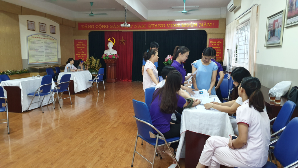 Thực hiện kế hoạch nhiệm vụ năm học 2019-2020, Trường MN Đô Thị Việt Hưng đã mời các bác sĩ chuyên khoa của trung tâm y tế Quận Long Biên để khám sức khỏe cho cán bộ giáo viên, nhân viên của trường khám tổng quát theo quy đinh. Khám sức khỏe định kỳ là hoạt động cụ thể có ý nghĩa thiết thực được tổ chức thường niên nhằm giúp cán bộ, giáo viên, nhân viên nắm được hiện trạng sức khỏe của mình đồng thời giúp Ban giám hiệu nắm được tình hình sức khỏe của CBGVNV trong trường nhằm phục vụ tốt công tác giảng dạy và học tập.