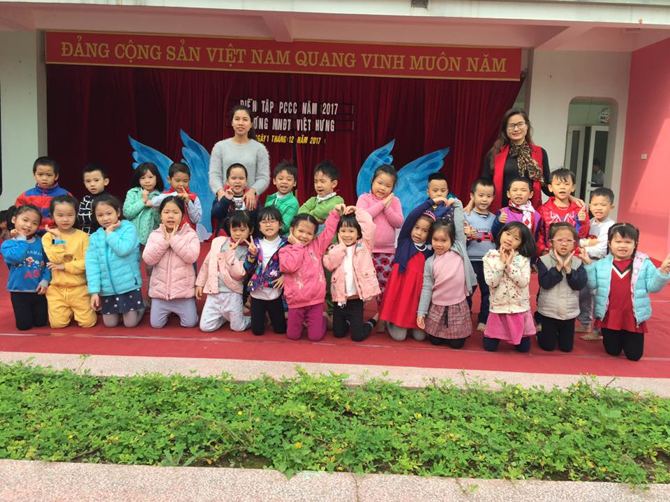 Khi có còi báo cháy vang lên, các bạn nhanh chóng lấy khăn ẩm che lên mũi miệng và ra sân tập kết.