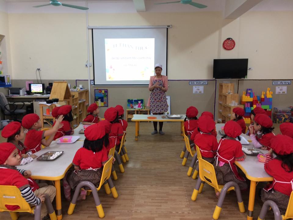 Các bạn đang chăm chú nghe cô hướng dẫn cách làm