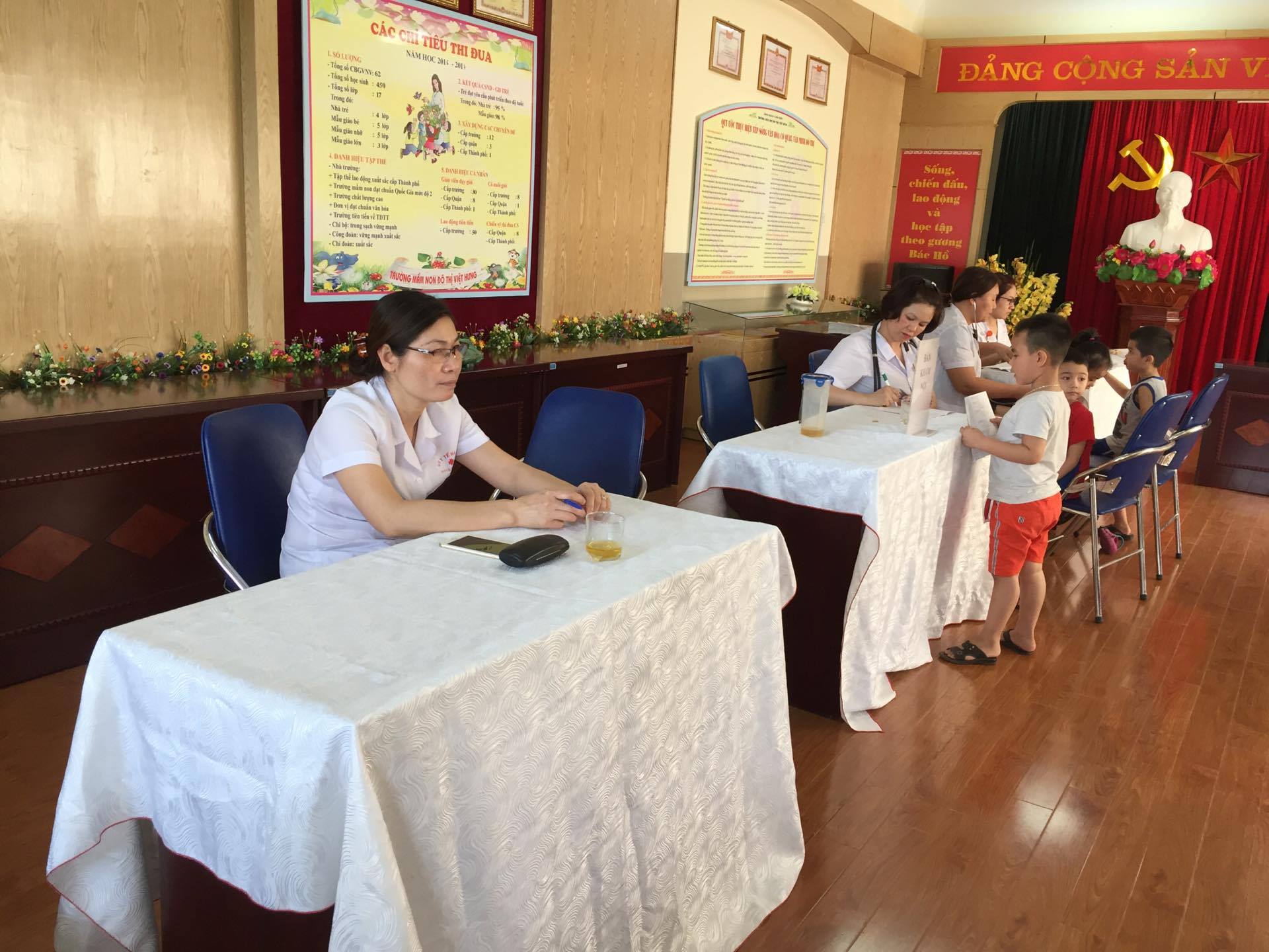 Các bé xếp hàng để bác sĩ khám
