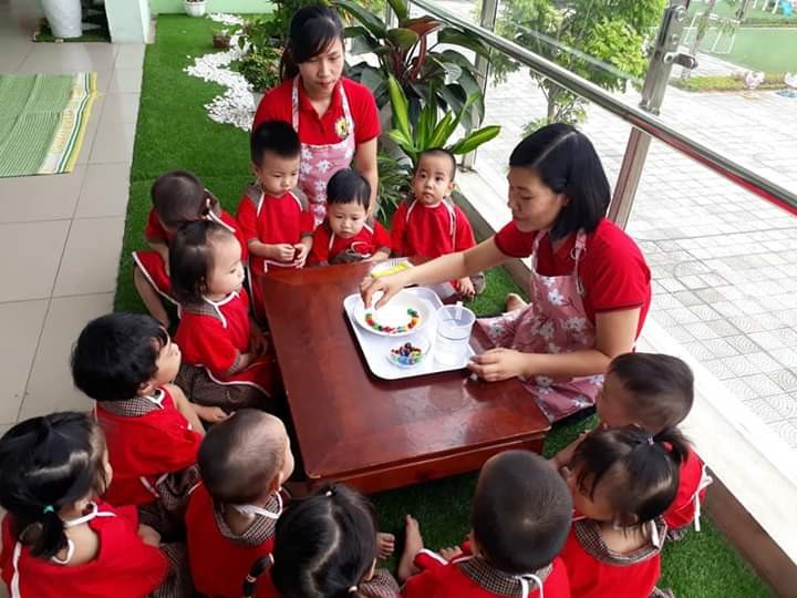 Cô Nga dạy học trinh trong hoạt động học cũng như hoạt động ngoài trời.